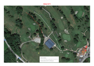 Smooth left dog leg with a light downhill before the hole. White and then red sticks on the left.