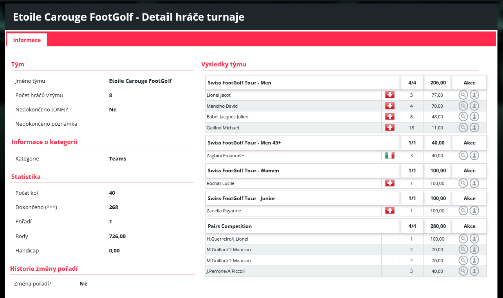 - systém počítá získané body dle nastavení a pak nejvíce bodů v rámci jednotlivých týmů rozhoduje o výsledné pozici