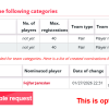 V případě, že je tým vytvořen ručně organizátorem turnaje, nevztahují se na něj pravidlavýmazu nebo změny pomocí žádostí mezi hráči! Je třeba kontaktovat organizátora turnaje.